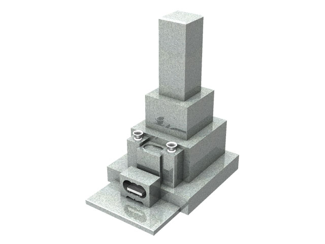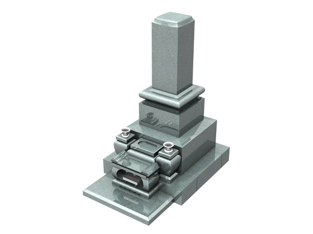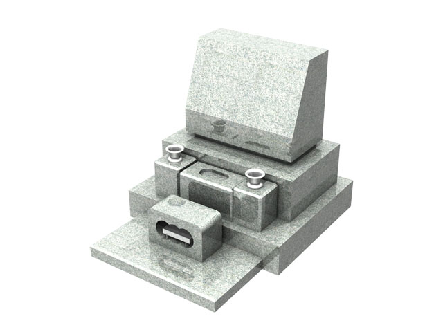 和型墓石は江戸時代から一般に普及した日本の伝統的な墓石で、今でも多くの墓地がこの形です。一番上から竿石・上台石・中台石・芝台石を置いた構造が基本です。これに水鉢・花立・香炉が付属します。